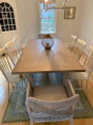 This is a great family table. My daughter thinks the fabric on the seats is a bit itchy, which is why I gave this dining set 4 instead of 5 stars. Otherwise it is very functional and looks beautiful!