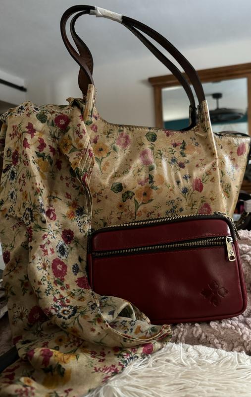 I had this bag in my cart for some time just waiting for it to come on sale. So glad I did, it's PERFECT :). Perfect size, love the pattern and that it comes with a strap for cross-body carrying. Patricia Nash bags are AWESOME -- beautiful leather and well-made. I even bought the matching wallet which I also love. You would think these items being made of leather would be heavy, but they're not at all. I have a few of Patricia Nash bags now and will definitely be adding more to my collection:). Highly recommend!