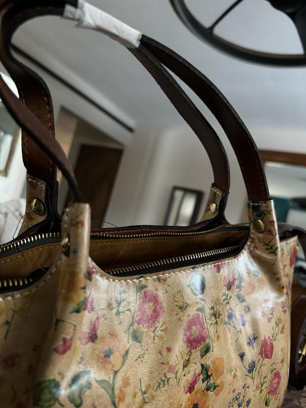 This bag is absolutely gorgeous!! The size is perfect for casual or semi-dressy attire and the colors in the pattern make it easy to match with outfits. I don’t use the crossbody strap so use the rings to hold my glasses when I’m not wearing them. But the quality…. I have numerous PN bags of different sizes and am the most impressed with the quality of this one! The feet keep the leather safely off the ground, the pleats (where the handles attach) are an extra detail that gives a glimpse of PN’s unique features, zipper pulls easily and the top opens completely for easy access. I especially love how the bag holds its shape; the (short) straps stand on their own where my Rosina satchel’s straps fold down. The (leather flap) clasp on the Rosina is already showing wear after one season which isn’t something that will be an issue with the Prarie Rose satchel. I have a few of PN’s red bags & accessories so was a little bummed that the flowers are more deep pink than red (the Prarie Rose scarf’s flowers are more red than pink (which actually works great for me bc I can wear the scarf with my other red purses ;) ) but I still use my red Viani wristlet as a wallet because it’s *that* close. I’m so glad that I made this purchase and would recommend this bag or this pattern in general, to anyone willing to listen :D