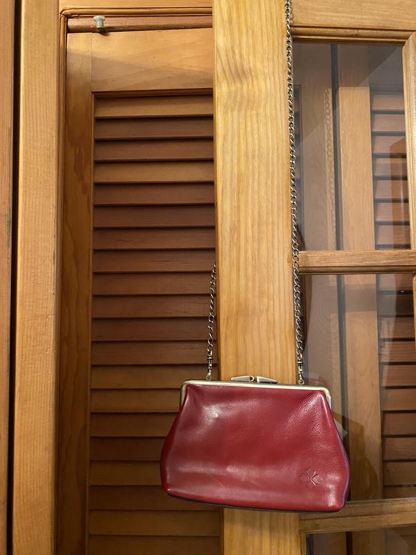 Love this style. Lightweight. Stable chain. Roomy enough for phone, keys, wallet, sun glasses. Quality leather. Love the red!