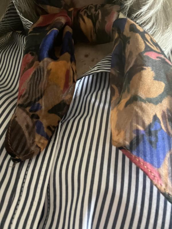 I have a collection of Patricia's scarfs and wear them in my hair, as a belt and numerous ways around the neck and on my purses as a decoration. I also like to wear them as a shawl over my shoulders. I love the prints and the versatility they offer. They are lightweight and long and the size is just perfect.
