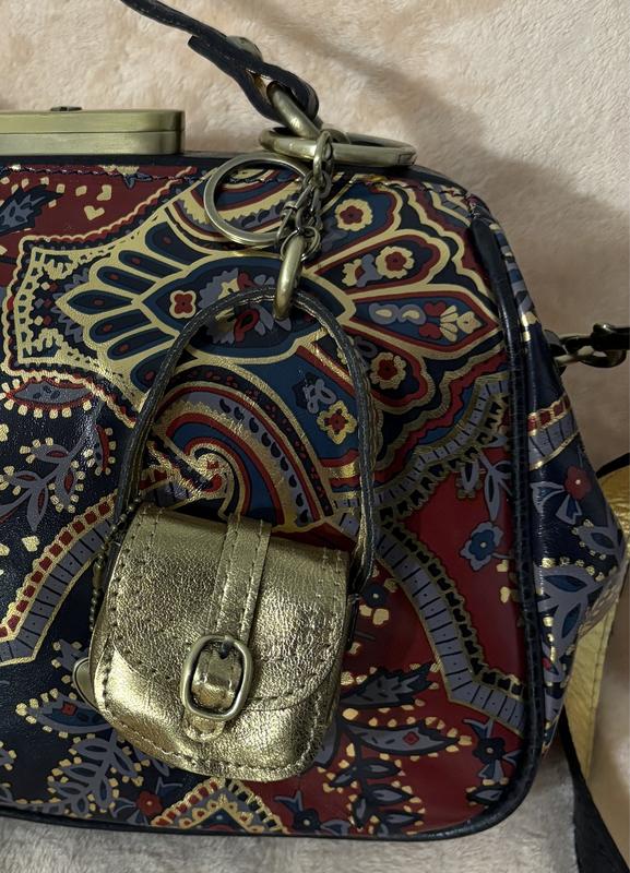 I purchased this recently and I feel like a leprechaun, this is my pot of gold. This is the cutest, most adorable gold bag charm. I just love her. She snaps open and small things can be tucked inside. So real like and detailed. The little buckle, the handle, the strap closure extends to the back of the bag. I’m so happy. I just miniature things.