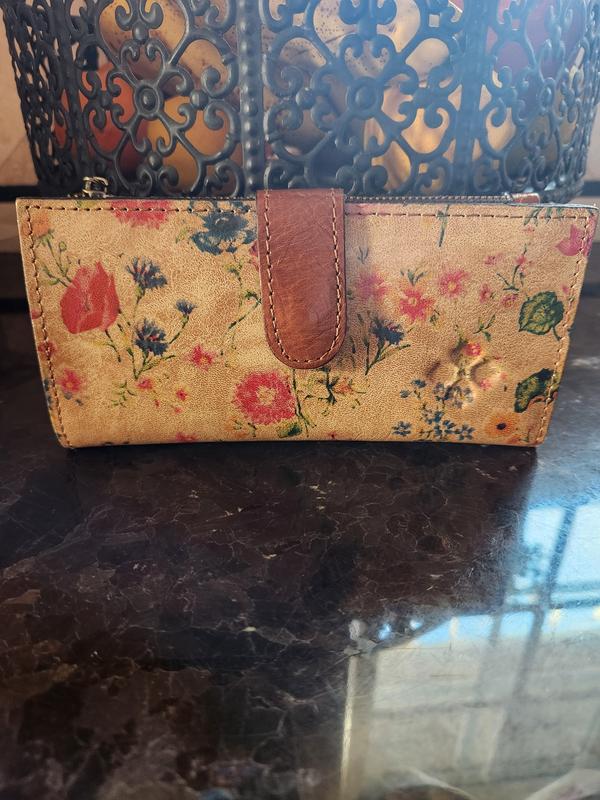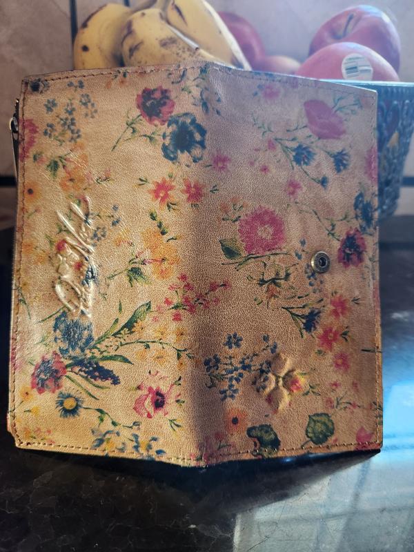Love Patricia Nash. Have several wallets and purses. I really liked this wallet except it wasn’t long enough to fit paper money. I put it up to my other wallets and it is a good inch or so shorter. My bills wrinkled up. For that reason I sent it back. I wanted this one for the outside zipper to put change. The other wallets, you have to open them up to get to the zipper. I want to get to it from the outside. This did not work out for me.