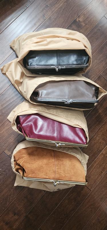 I am so in love with my new Patricia Nash Serafina Extra Large Kisslock. The color mushroom is so beautiful and rich. The style of this beauty is perfect and the leather is so luxurious and buttery soft. I’m so glad to have this in my collection and looking forward to purchasing every color that’s available. Chef’s Kiss….