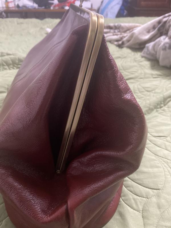 First, I adore this bag. The leather is smooth and soft the strap can be tucked if you want to carry the purse under the arm or used for convenience on the shoulder. I haven’t had any issues with the kisslock opening and not staying closed. It’s huge inside of you like a big bag but not so big that it’s overwhelming. It’s the right size for a big kisslock. Compared to other xl kisslock bags this one is cute, convenient, wonderful leather and affordable. I highly suggest this purchase. Patricia Nash did great with this creation 🥳