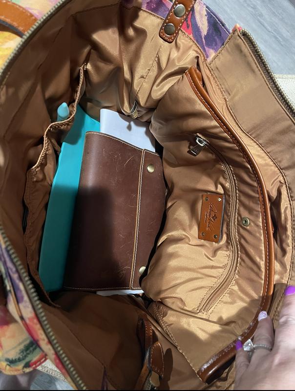 I bought this bag for a weekender. It’s perfect! The print is gorgeous. The organization of Patricia Nash bags is to die for. I’m able to pack this pretty tote a little at a time and know exactly where everything is ready at hand. I love that it can slip on top of my carry on. Weather resistant matters. Thank you Patricia! The Sorlana is a beautiful winner!