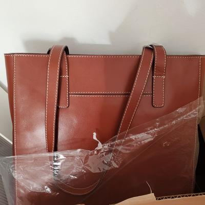 I purchased this bag on line without seeing it in person. When it arrived I was so pleased with this beautiful timeless bag. This bag will hold a laptop or tablet, & is excellent for work. You can use it & look elegant while carrying it. The leather is beautiful & there is an outside pocket on both sides that you don't notice which are ideal for your phone. The top of the bag is secured by a zipper. I liked this bag so much I bought several more for gifts.