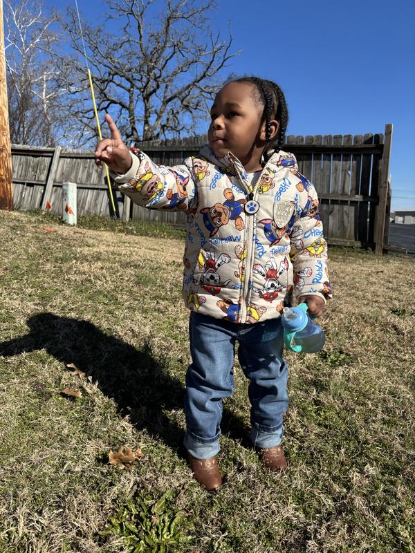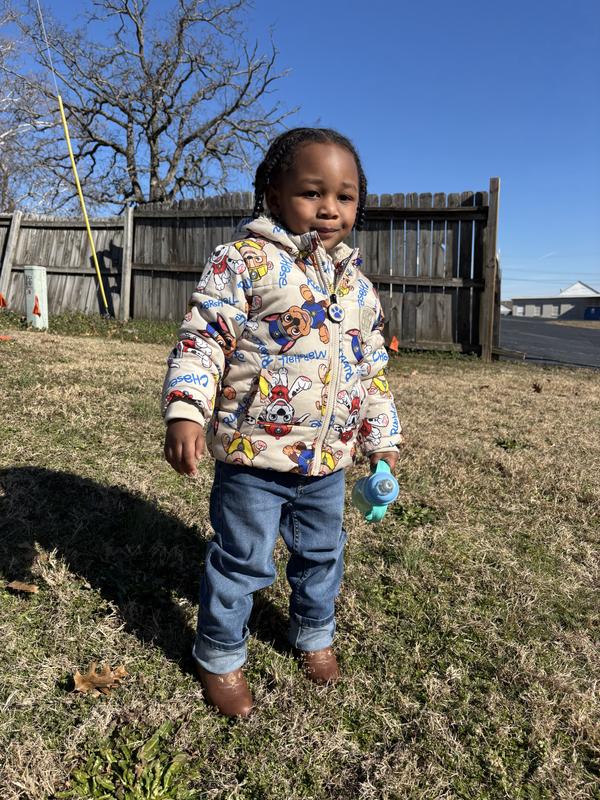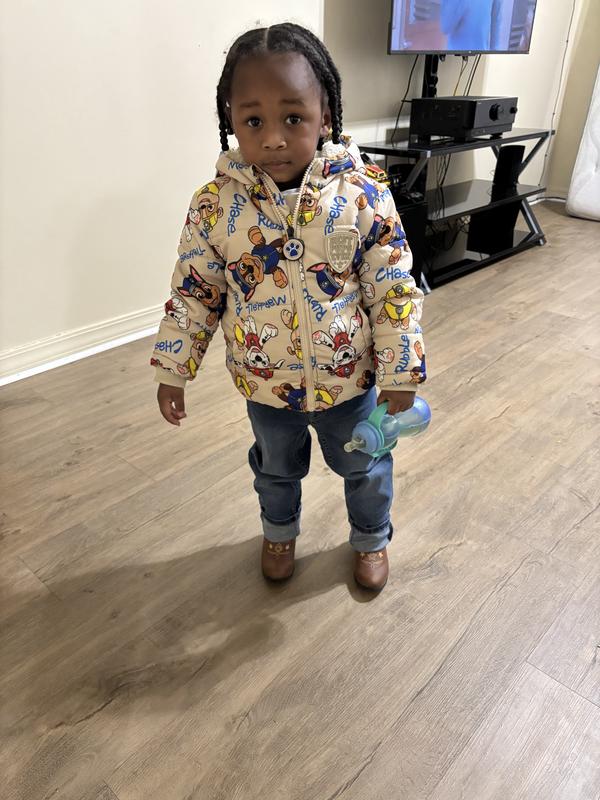 My toddler loves this jacket because it’s paw patrol but I love that it keeps him warm. Only put 4 stars because I had problems with shipping.