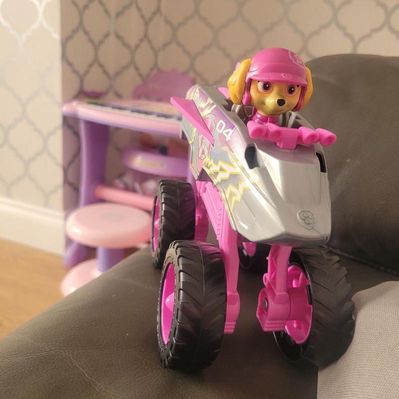 My daughter really enjoyed playing with her new paw patrol vehicle. Its a small figurine that changes position from the wheels coming out to a normal 4 wheeler and she enjoys driving it across the carpet. It would be slightly better had it had more functions and features such as light up. It comes ready to play out of the box