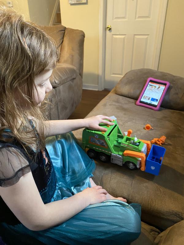 This PAW Patrol Rockys Reuse It Deluxe Truck with Collectible Figure is has a lot of great features. My 4 year old son thought it was really cool that it looks like you can turn scrap metal into tools and he loved that the arms for the recycle bin turn outward so you can attach the tools to them to do more "work". Both the arms and the upper part where the tools get "made" seem very sturdy because my kids aren't really careful with anything and it seems like this will last quite a while. There's even a control panel on the side of the truck so you can pretend to do even more technical work. I would definitely recommend this for anyone who loves PAW patrol or recycling trucks.