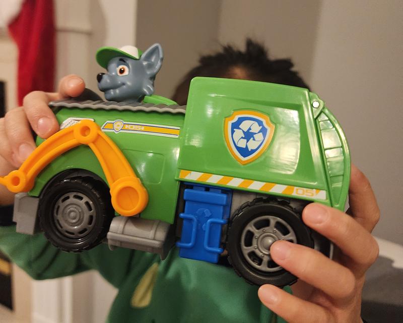 We are so grateful for the opportunity to try out this new PAW Patrol Rocky and Rescue Truck toy set! It came with a Rocky figurine and a truck with real working wheels, a forklift that goes up and down, and a tailgate that opens! My two year old loved opening and closing the tailgate and hiding things in it. I love that this toy set is environmentally friendly and made with at least 80% post-consumer recycled plastic. And we've already mixed and matched it with our other Paw Patrol sets (we already have Skye, Rubble and Marshall sets in our collection).