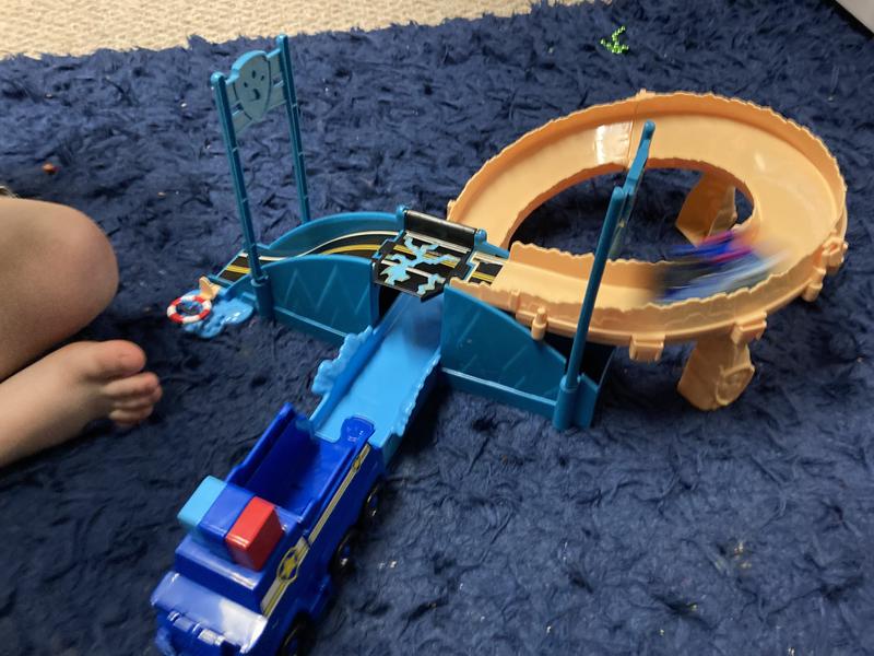 This Paw Patrol police rescue set is a ton of fun. You put the car in the track and hit the button and Chase flies around the track and out. My son figured out that you can use the other Paw Patrol racers on the track as well so he was pretty excited about that. Overall another great Paw Patrol toy for our collection.