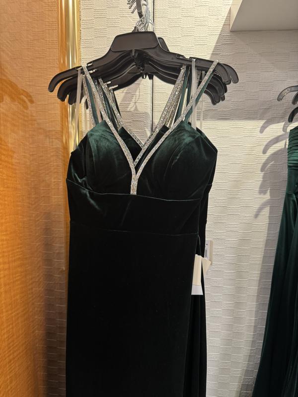 Junior's Strappy Spaghetti Glitter Sleeveless Gown