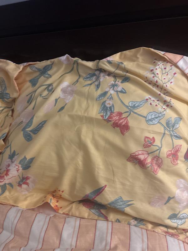 I really thought being from Macy's, the sheets or comforter would be of good quality. The sheets are so thin they just slip off. The comforter is a not too much thicker. I'm very disappointed. The print was the only thing I liked. I can't believe they sell such cheap stuff. I thought it was just on clearance, but it was just a cheap generic blanket. A comforter is supposed to be thick. You should be ashamed and take these items off of your market. Quality is essential in a name brand.
