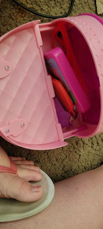 This is such a cute Peppa Pig set. My daughter absolutely loves it. It comes with cute little keys for her to play like she’s driving the car. She gets all dolled up with the included glasses and “talks” with her friends on the play phone. It comes with a convenient purse to store all the items for her to easily carry with her