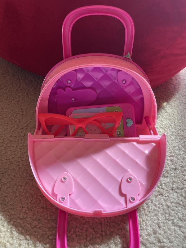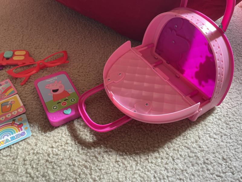 The Peppa Pig Peppa Purse Set is so cute for the fashionable child who wants to pretend they are out and about. It comes with a purse, keys, purse tag, rewards/credit cards, talking cell phone and fancy red glasses. Perfect toy to play at home or take with you to keep them entertained.