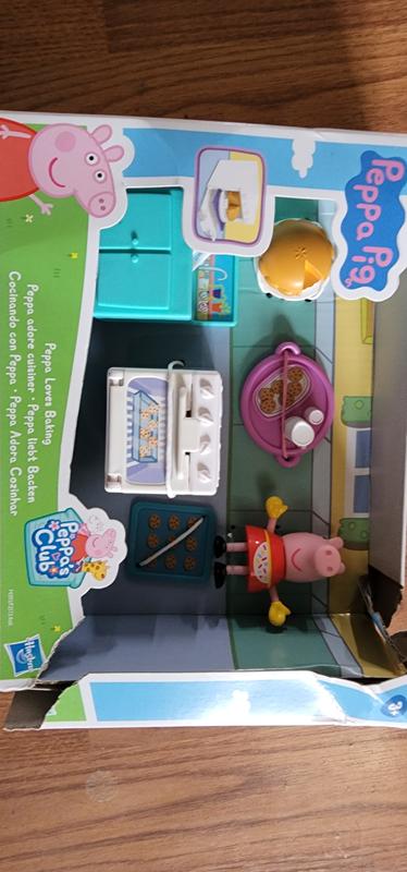 I brought the Peppa loves to bake for my niece and she absolutely loves it. It is so cute the the kitchen sink top turns where one side has bubbles and the other side is empty , so it looks like Peppa pig is washing dishes. I love the pie and tray of cookies with the stove and the plate with milk an cookies. It was such an adorable cooking set. I love that the put oven gloves on peppa as well.