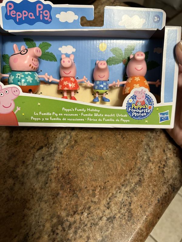 Peppa Pig Peppa's Family Holiday figures are cute. It's a set with Peppa, George, Mommy Pig, and Daddy Pig dressed in Hawaiian type vacation shirts. The figures are very well made and durable. The legs and head moves a bit. My daughter had fun putting them in sitting positions and pretending they were landing in mud puddles. Great figures for Peppa Pig fans.