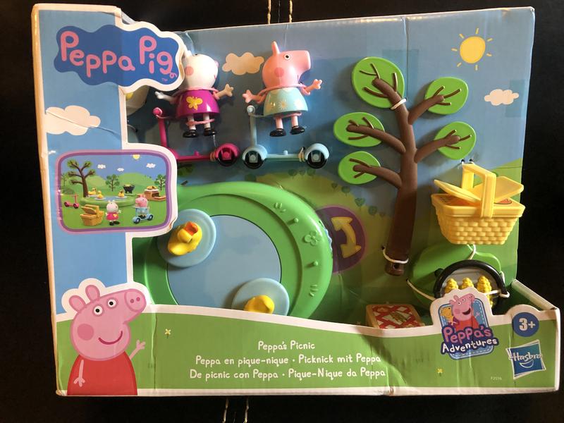 Just received the Peppa Pig Peppa's Picnic Playset and my 3-year-old daughter loves it! It comes with Peppa and her best friend, Suzy Sheep, as well as a wide assortment of picnic essentials including a tiny pond with ducks that you can move around, a picnic table and picnic basket, a tiny baked pie, a grill with corn on the cob, and a tiny scooter for both Peppa and Suzy. All in all, a very cute set that any Peppa Pig fan will love!