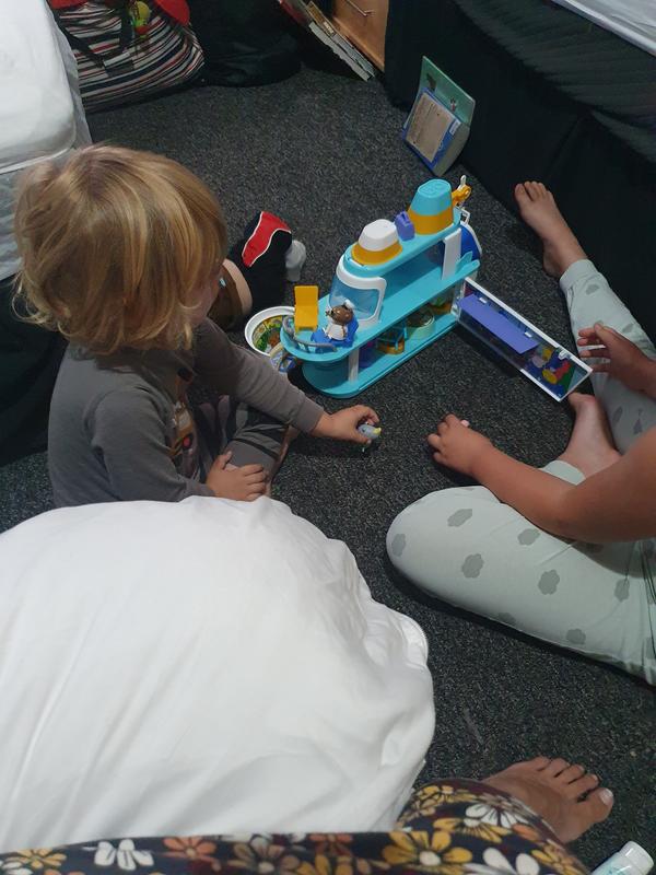 My 5 year old loves this toy. The details of the ship are cute, there are lots of different areas to put the characters in and pieces that click into different places to change the look of the boat. Love the compartments that open, and especially love that all the parts can be kept inside the boat so it’s easy to store.