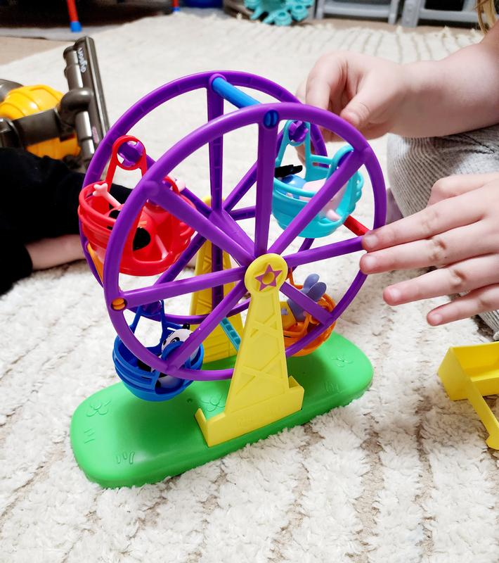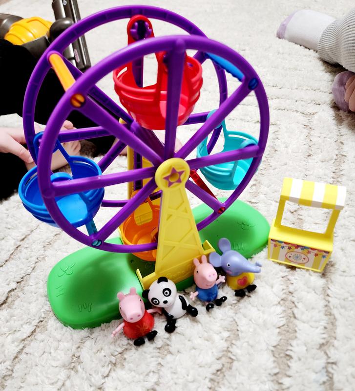 Not only did my twin 2 year olds love this toy but so did my 5 year old son. We watch peppa pig in our house almost daily so getting this toy was a no brainer. I love that it’s so bright and vibrant and that the figures fit nicely into the seats. Turing the Ferris wheel is so easy that that alone occupied my twins for half an hour at a time. We will be looking for more awesome peppa pig toys soon!!
