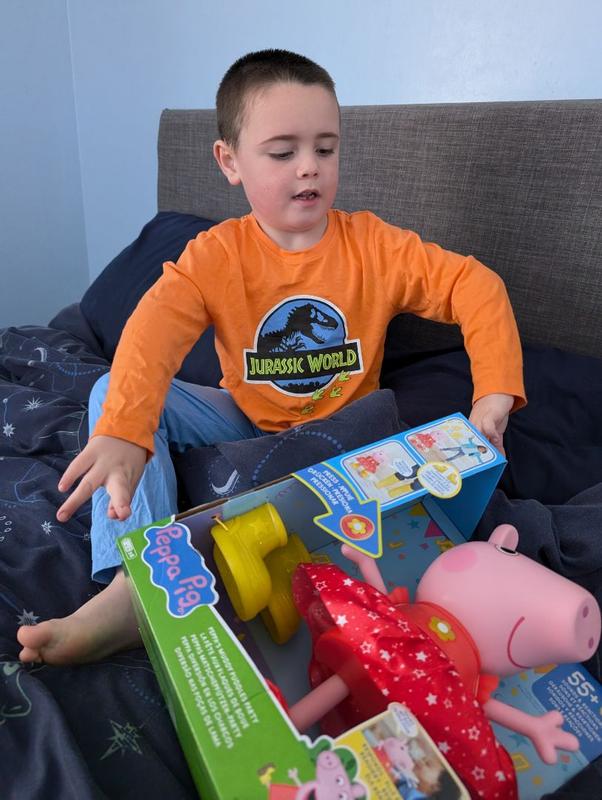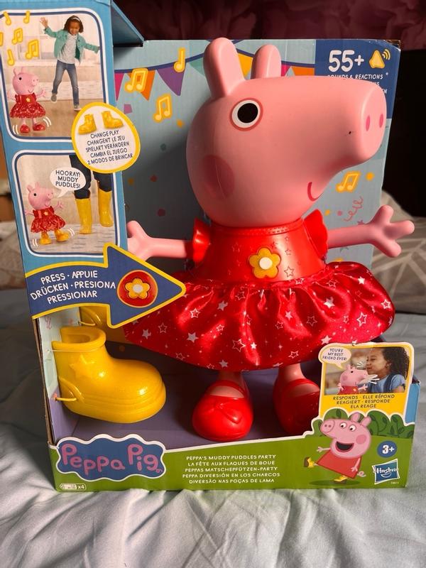 I received the Hasbro Peppa’s Muddy puddles party toy from Influenster to test and share my thoughts. Initially, I expected the entire set to match the picture on the app, but I only received Peppa in a shiny red outfit, along with a complete shoe and an additional sparkly yellow shoe. The toy is fantastic and features voice activation. My two-year-old daughter absolutely loves it and has made it her new friend, calling it “my baby.” She enjoys playing with it, even mimicking snoring sounds as if Peppa is sleeping. My daughter carries Peppa everywhere and sleeps with her, refusing to share with her older sister (who is four). The toy is made from durable materials and has survived several drops without any damage. I am very grateful to Influenster for this wonderful opportunity. I highly recommend this toy; it brings a lot of joy to girls.