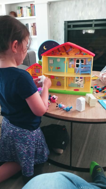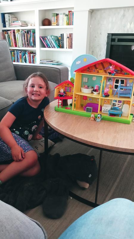 This Peppa Pig playhouse is the most cutest thing ever!! My little girl has so much fun pretending & playing with her Peppa Pig. Her imagination soars with this playhouse. It makes her feel like she is actually in the show. The figures that come along are the perfect size for their tiny hands & she loves all the interactive features. The structure of the house holds up so good that my little one has tested on many occasions and its still standing strong! High quality well made toy that is for sure. If your child adore Peppa Pigg like mine this is a must. Super cute & functional.