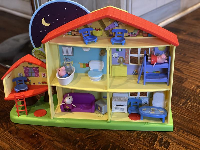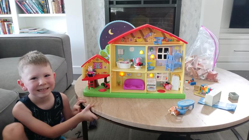My daughter is such a peppa fan ! This house was everything she wanted . So Interactive with the sounds , and multiple floors . She has spent countless time exploring and playing with her favorite characters . Get this for your little peppa fans you will wow them ! It has lights and sounds . The little playhouse it comes with for peppa is so cute . My daughter loved the cute little kitchen area and having her little characters go to the playhouse .