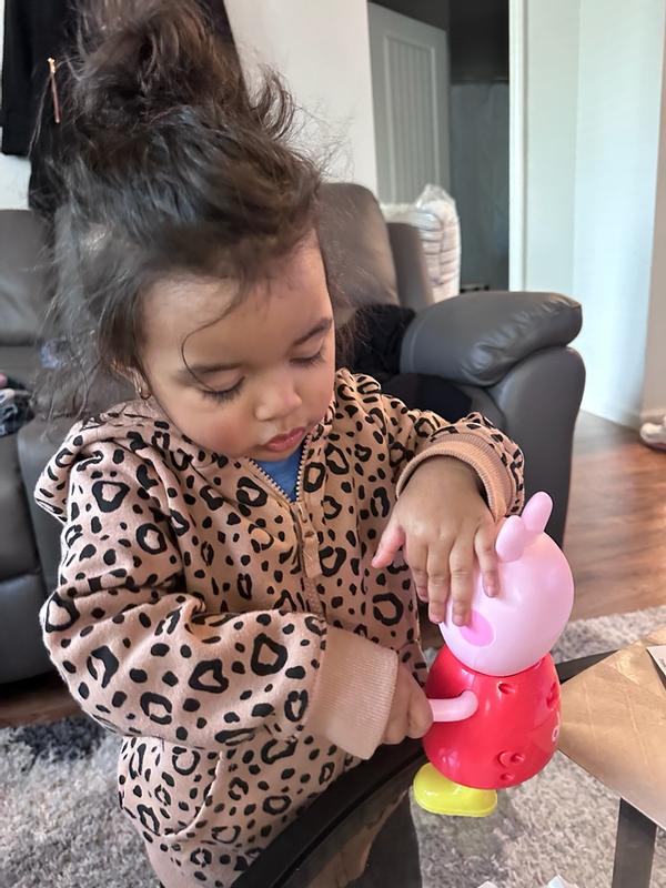 I gave this to my goddaughter and she fell in love with it immediately! It taught her how to manipulate the arms in order to get Peppa to sing. The singing isn't extremely loud but loud enough to hear clearly each word. Battery life is also incredible and long lasting