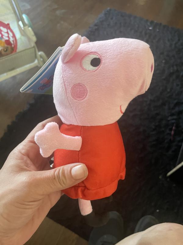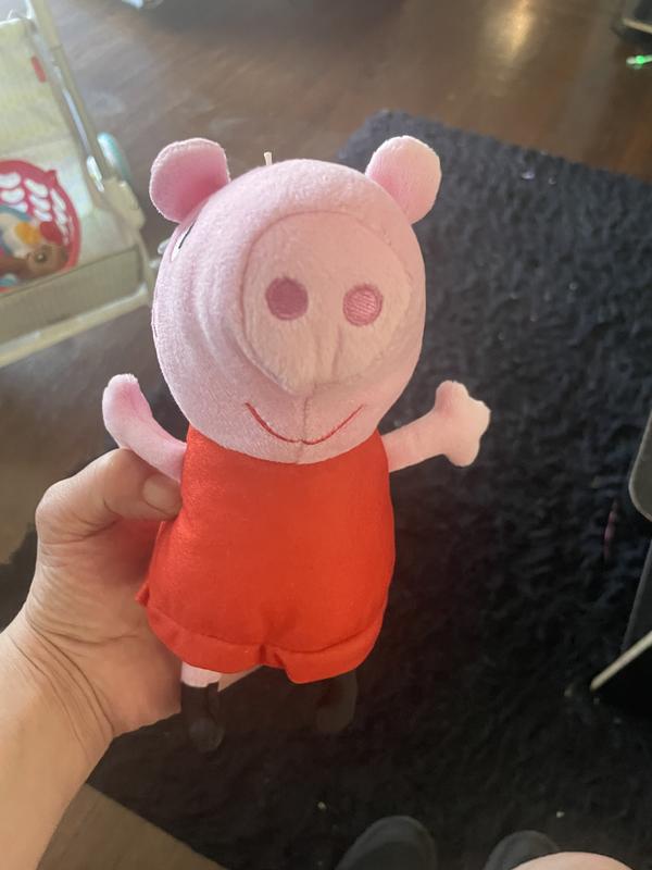 This stuffie is the perfect size for little hands! I’m not used to seeing stuffies in this size. It’s about the size of an adults hand. The added sound is a bonus. It’s also easy to wipe clean. My little one loves this Peppa Pig!