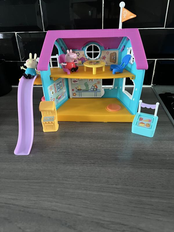 My girls love playing with this peppa pig clubhouse. They love that you can push the button and it speaks and plays the peppa pig theme tune. My kids lovely pushing peppa down the slide and putting her in the swing too