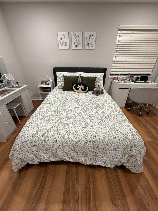 I absolutely love this comforter set! The floral design with green embroidery gives such a peaceful and charming vibe to my bedroom. It’s soft, lightweight, and perfect for all seasons — not too heavy, but still keeps you warm. The fabric feels great against the skin, and it holds up well after washing. The pattern looks even better in person! I also like how easily it blends with neutral or earthy-toned decor.