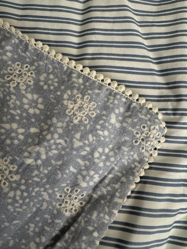 This is a nice duvet set. It’s good material, comfortable. And it gives me the feels of cottage core with the beautiful blue. It fits well with my duvet insert and seems to last in the wash. So far I’m impressed