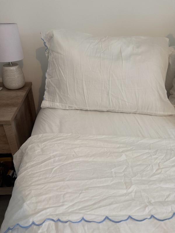I’d been wanting a cute sheet set to mix it up between my other all white sets and this was the perfect design! I also love that it is good quality with 100% cotton. The only note is that it’s not as good for warm summer nights, but I’ll be using often in the fall and spring.