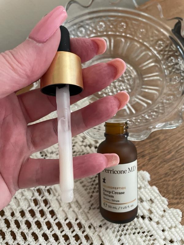 I’m very impressed with my VISIBLE results using Perricone MD Deep Crease Serum. This thick yet easily absorbed serum is serious skincare. I saw results especially around my mouth and between my brows. The Biomimetic Growth Factory Peptides lifts and improves skin elasticity. The Plant Stem Cells increases skin’s thickness. I simply applied to clean skin the morning and evening. A slight fragrance was noted but very subtle and pleasant. This product does not affect the appearance of makeup for day use. Perricone MD uses science and research for skincare with beautiful results. I highly recommend!