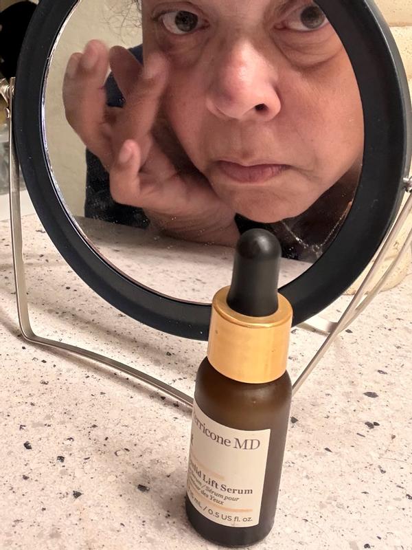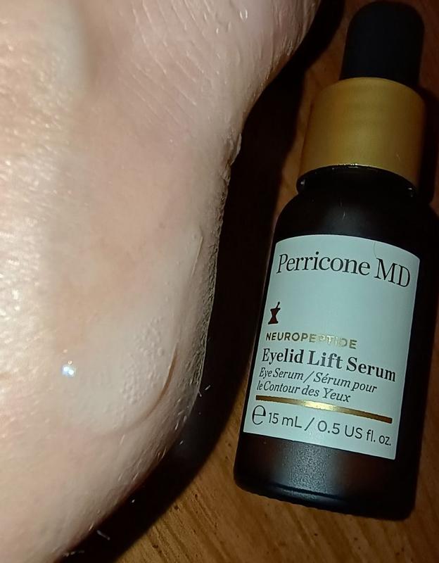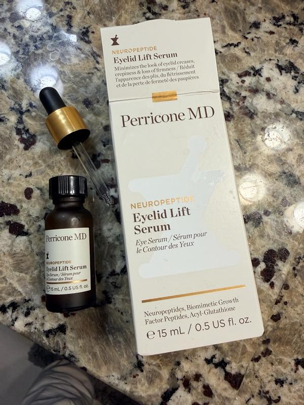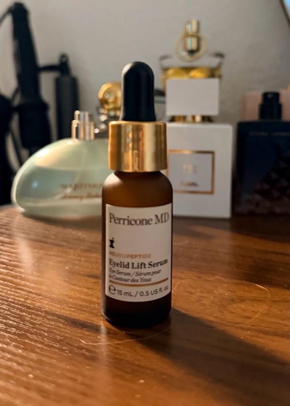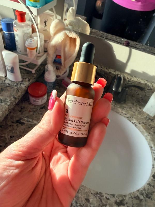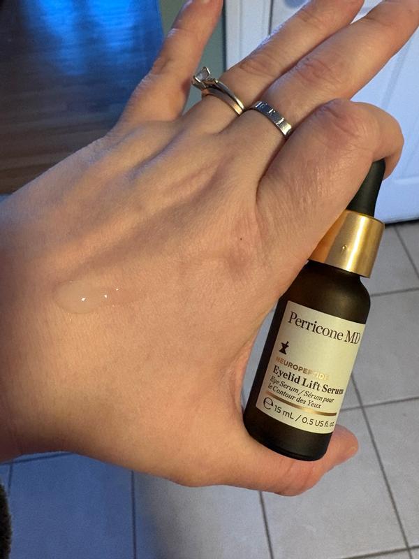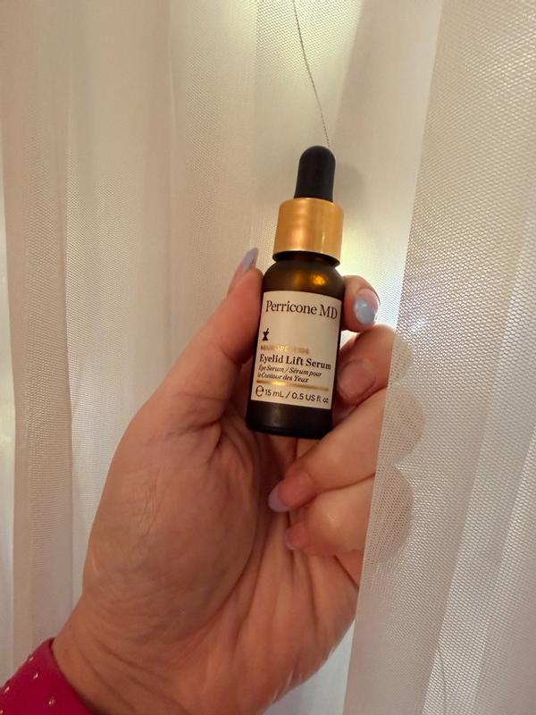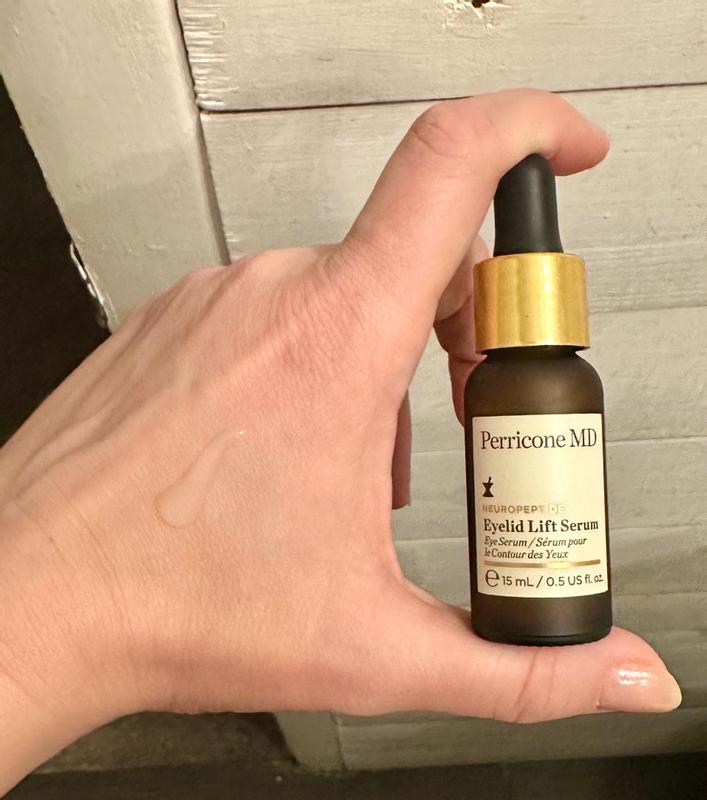 Perricone MD is my absolute favorite brand of all time because they use ingredients that work amazingly well with their very own recipe every time. I don't claim to be an expert on what is used to make an incredible product, but I know what works and this eyelid lift serum is magic! I have always had "sleepy eyes" and as I age, it's going from Bette Davis to plain old tired. One drop dabbed on both eyelids makes me look more awake and I can still put makeup on. I have the most sensitive eyes EVER, but I have had no adverse reactions. I normally won't put anything around my eyes because of how sensitive they are, but I trust this brand. I'm just so pleased!
