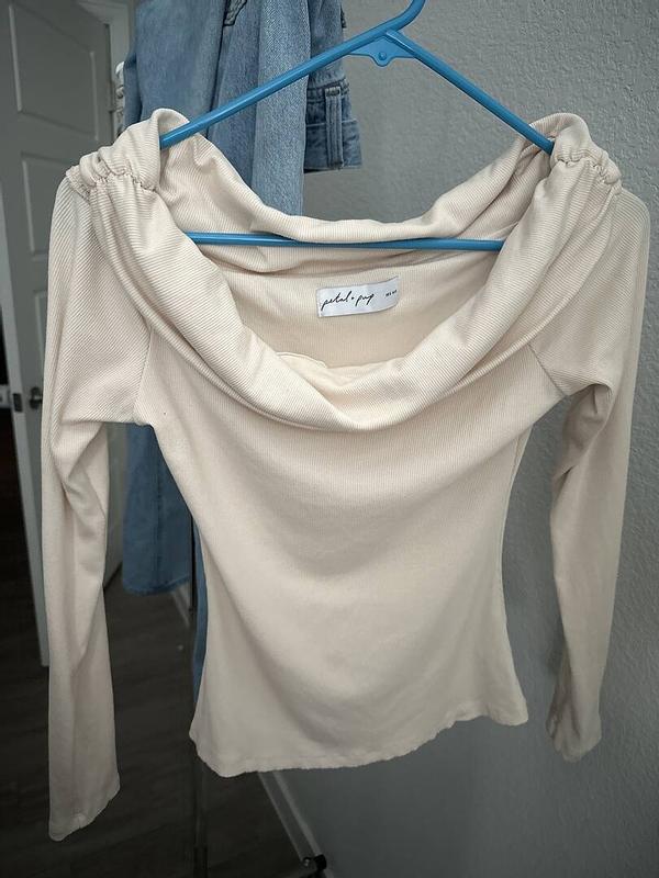 Turn heads in the Thomsie Off Shoulder Knit Top in Ivory. Designed with a chic off-shoulder silhouette and a sleek straight neckline, this top effortlessly balances elegance and modern style.