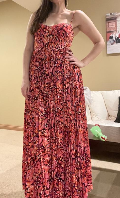 This dress is so pretty! I had it in my cart for ages and finally went for it. I’m a bit on the shorter side so it was more of a maxi dress than a midi. The underwire of the cups don’t sit exactly right, nothing a little adjustment can’t fix. I always get compliments when I wear this!