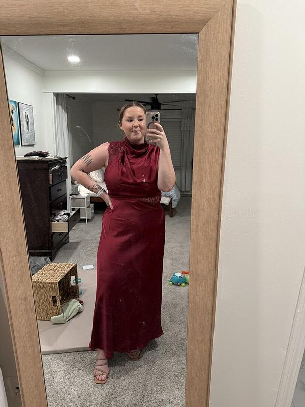 Women's Anabelle Halter Neck Lace Maxi Dress - Berry
