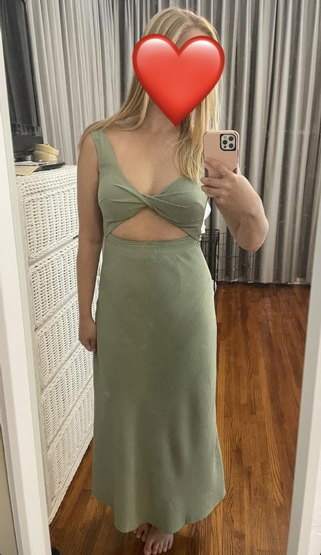 This dress is so flattering! I had to size up for it to fit around my chest area. The color looks great as well.