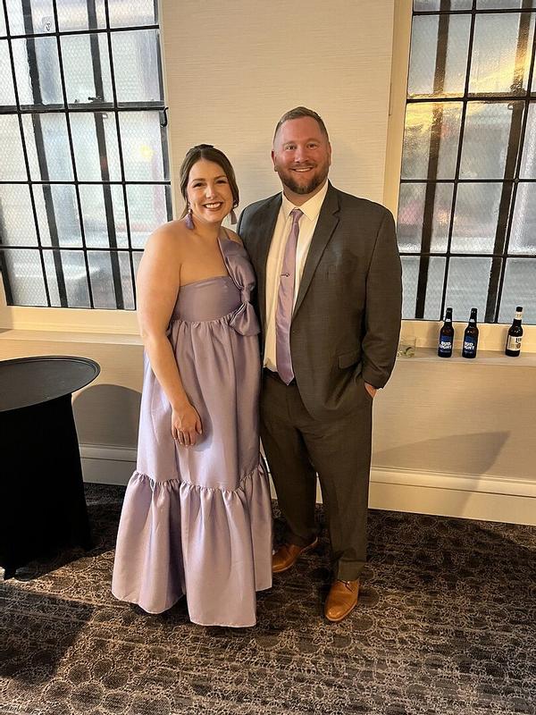 This dress is absolutely gorgeous! The vibrant Lilac color is stunning, and so feminine. The fabric is lightweight and drapes beautifully, creating a flattering silhouette for an expecting mom (8 months). It fits true to size, and I received so many compliments when I wore it. It's definitely a versatile piece that can be dressed up or down, and it makes me feel so confident and beautiful