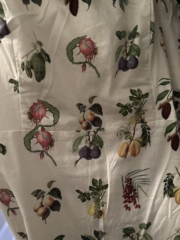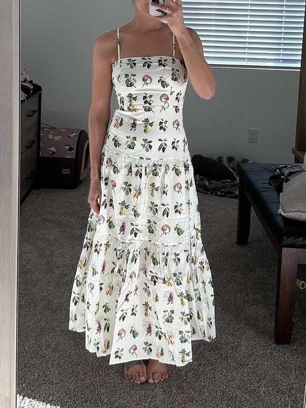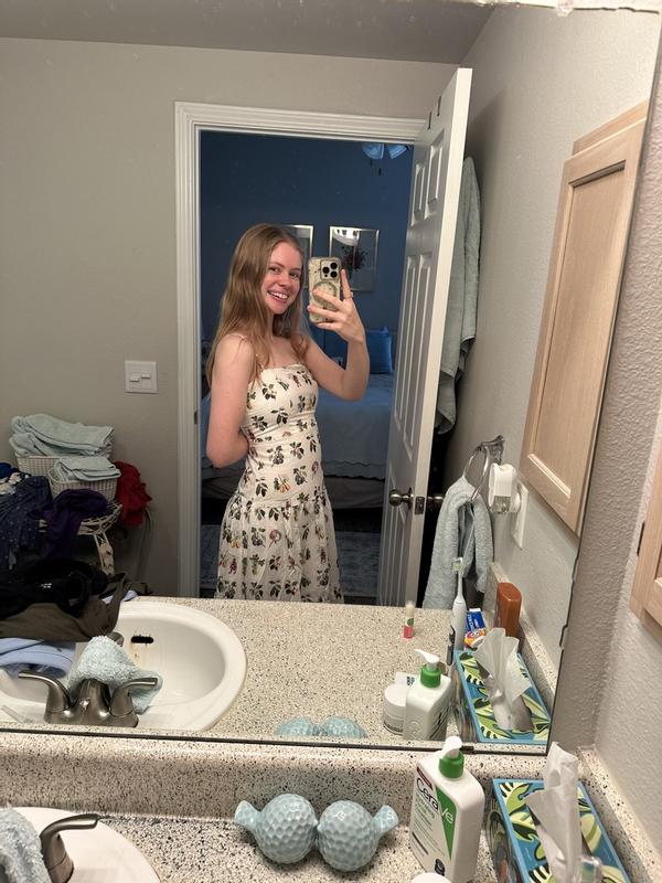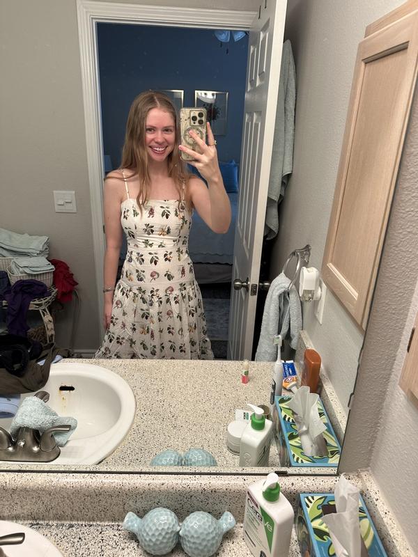 I get so many compliments every time I wear this dress. It is good quality, and the dropped waist fit is very flattering. It does run a little small in my opinion, I am generally between a small and medium and this dress definitely required getting a medium. The pattern is also lovely! There was a small construction error where some surging + extra thread was poking out of the side of a seam, but I snipped it off and it was fine.