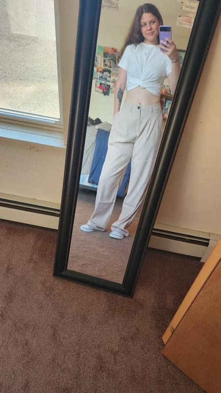 I recently purchased this crop top, and it has quickly become one of my go-to pieces. The fabric is incredibly soft and breathable, making it perfect for warm weather or layering under a jacket. The fit is just right—with just the right amount of stretch. I styled it with Petal and pup wide leg pants.