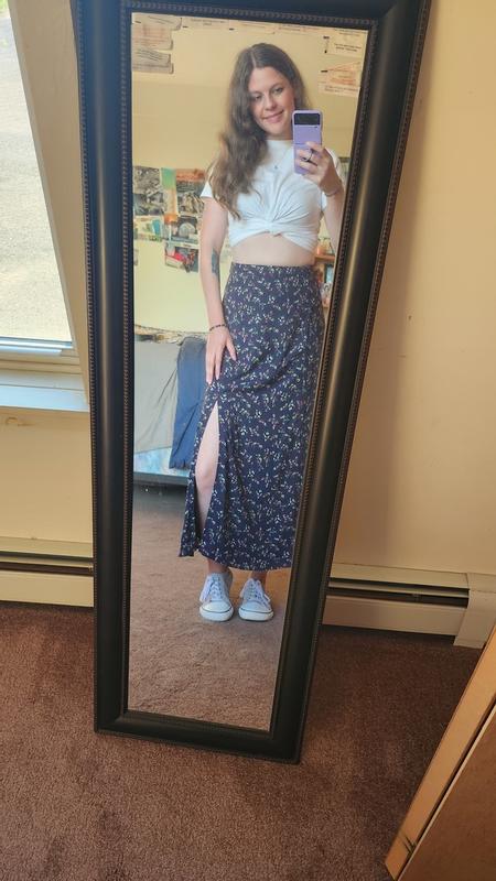 This shirt is very thin and a bit see through. There is elastic at the bottom of it, which mine was a little tight fit for a size small. The front knot looked kind of odd in person compared to the model. Not sure if I’d buy this one again.