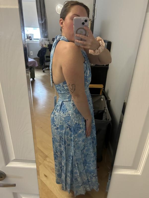Super cute dress! Love the color and pattern. I will be pinning the top straps so they don’t unexpectedly open on me, but as long as you can secure the straps you’ll be golden! Makes your waist look tiny. For reference, I got an XS, and I am petite at 5’2” 108lbs 34D 24” waist.