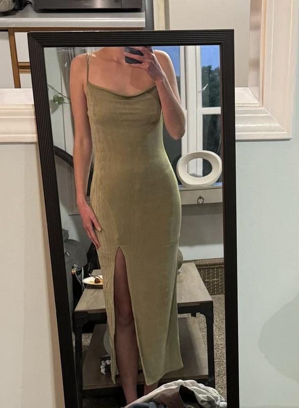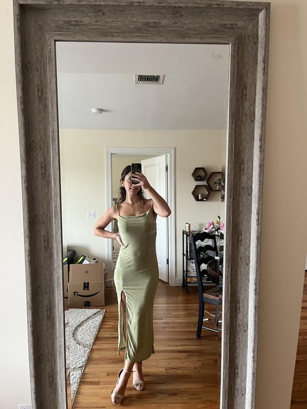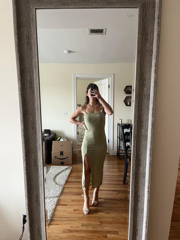 Looking for the perfect dress to make a statement at your next event? Look no further than the Diani Dress in olive! This trendy and fashion-forward dress is sure to turn heads with its stunning bodycon style, maxi length, and gorgeous cowl neckline.