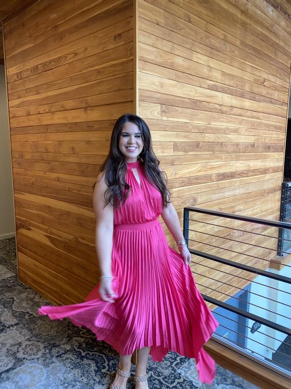 The pink color was beautiful but the fit of this dress wasn’t for me.