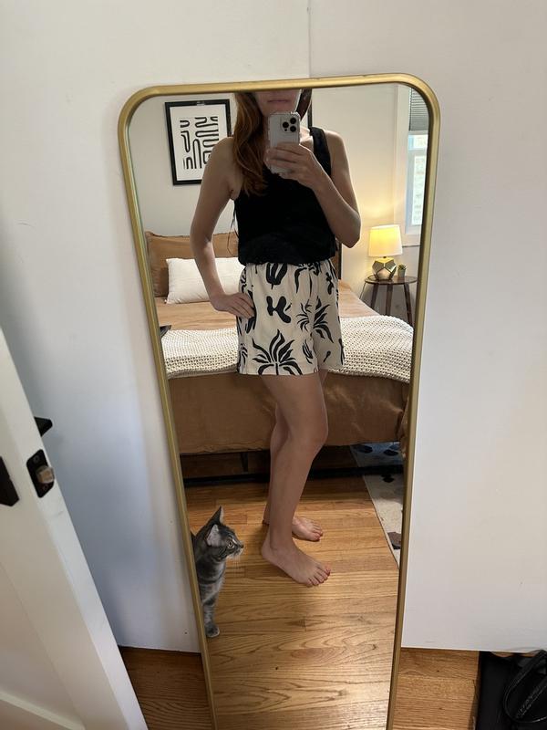 This has a surprising amount of weight on it, which is great so this top is not flying in the wind since it’s flowy! XS fit me the same as shown in the photos. Really pleasantly surprised by the quality and fit!