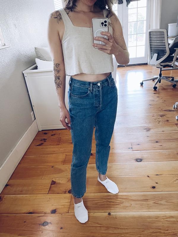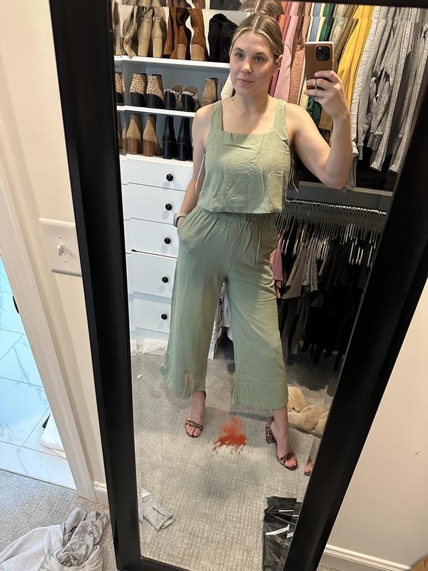 I love this top! It’s not too tight or too loose. The green color is so pleasing to look at. You can wear these with the matching pants or throw on some high waisted beige jeans