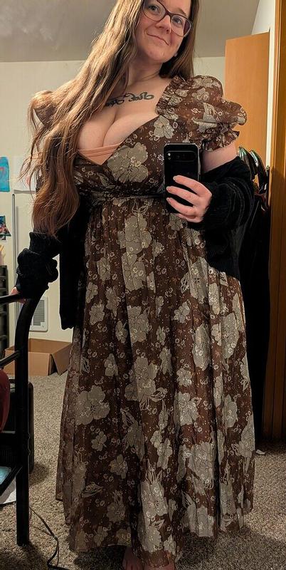 This dress is gorgeous and incredibly well-fitting even on my awkwardly shaped body! The first time I ever wore it out, I was complimented twice and it felt so good. I don't get them anymore since I gained weight! The sleeves are a little itchy, but that's just how that material is and I knew they would be before I bought it 😂 absolutely gorgeous and worth every penny! Bought a size XL and my measurements are below in case this helps someone of a similar body type! 36DD bra 35in waist 44in hips